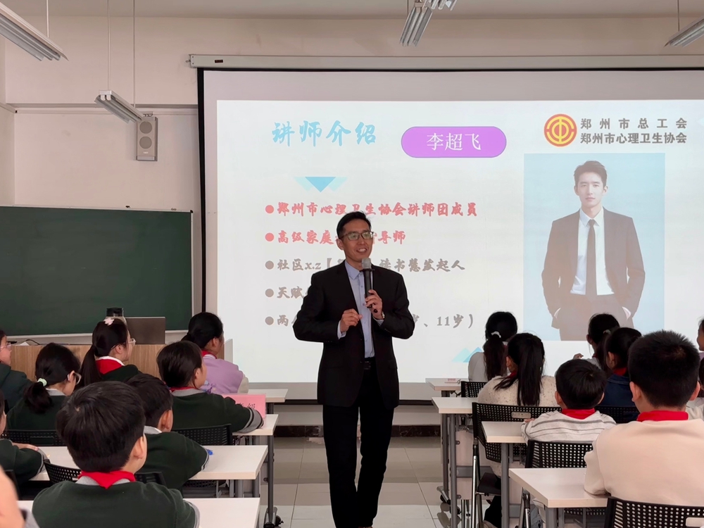 2026年4月22日上午,郑州市二七区长江西路小学特邀郑州市心理卫生协会讲师团成员、高级家庭教育指导师李超飞老师,为同学们带来以“让生命拥有韧性,自会茁壮成长”为主题的心理健康专题讲座。整场讲座氛围轻松温暖,李老师以温柔耐心的引导,搭配丰富有趣的互动,让同学们在体验中收获心灵成长。