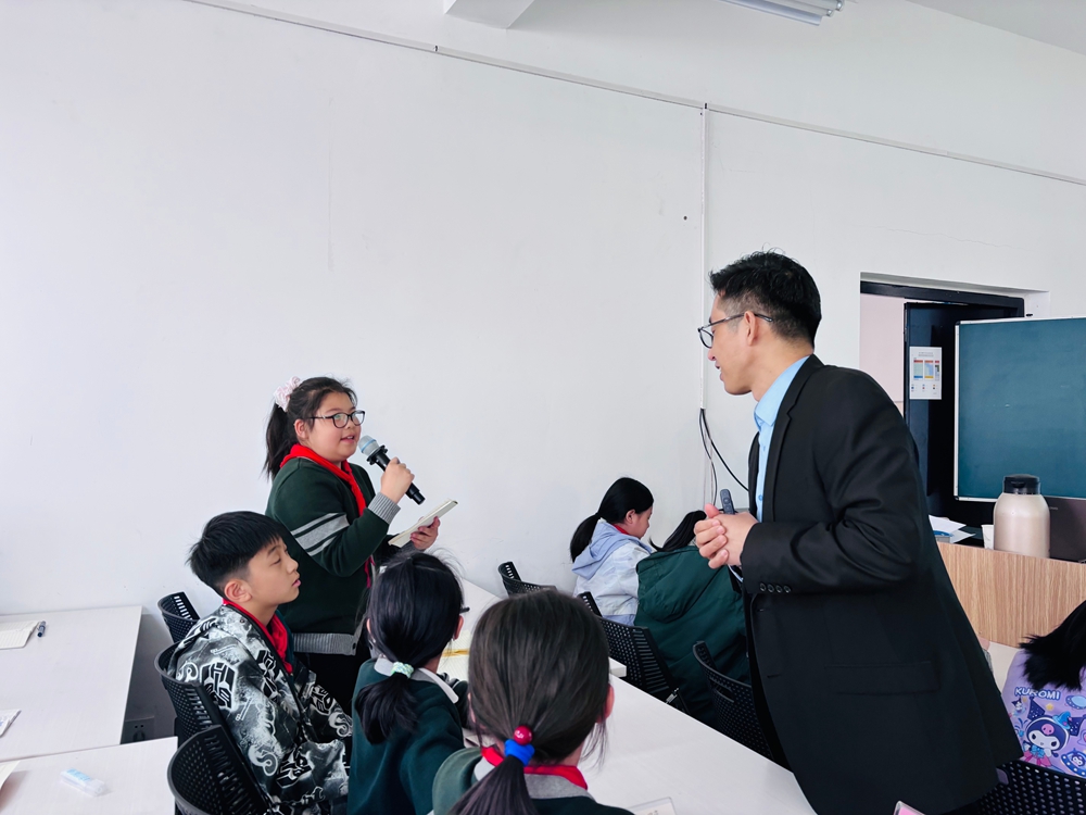 讲座中,李老师播放了赛车手张雪的励志事迹,以他坚守热爱、逆风成长的奋斗故事,激励同学们勇敢面对挫折、追逐心中梦想。令人印象深刻的还有“负面情绪气球实验”:李老师引导同学们回忆被批评、被误解、成绩不理想等不愉快经历,每想起一件不开心的事、每积累一次负面情绪,助教张军建老师就往气球里吹一口气。随着气球不断膨胀,最终在大家的注视下突然爆炸,直观又突然地让同学们明白,负面情绪长期积累,会像气球一样不堪重负,及时疏导情绪至关重要。讲座中,李老师还围绕6Q和谐发展、学习的意义、做情绪的主人等内容展开分享,教会大家用“6Q六银句”正视错误、接纳失败,懂得“先处理心情,再处理事情”。孩子们积极举手、踊跃参与,在问答与体验中学会调节情绪、直面挫折,理解生命成长需要韧性与力量。